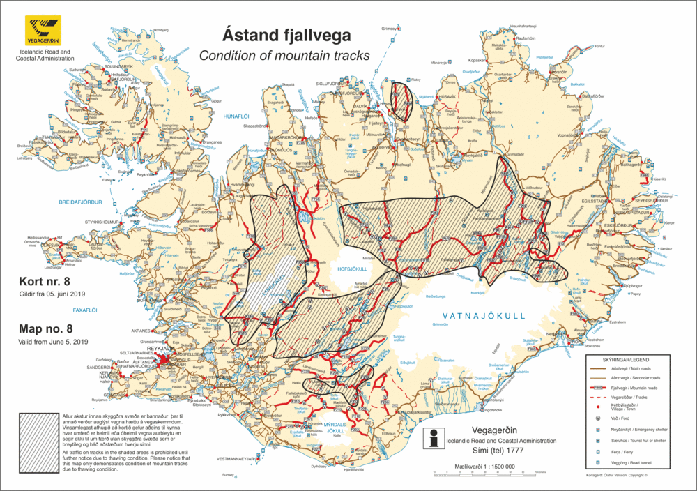 This is the Icelandic Halendi map archive for 2019, as originally posted by Vegagerdin. The first map has been published on 2 may. That is a very early start of the spring season this year.
