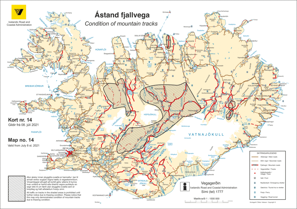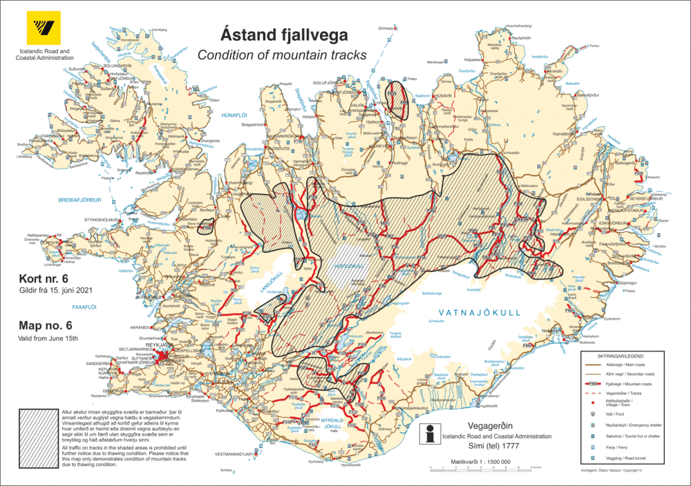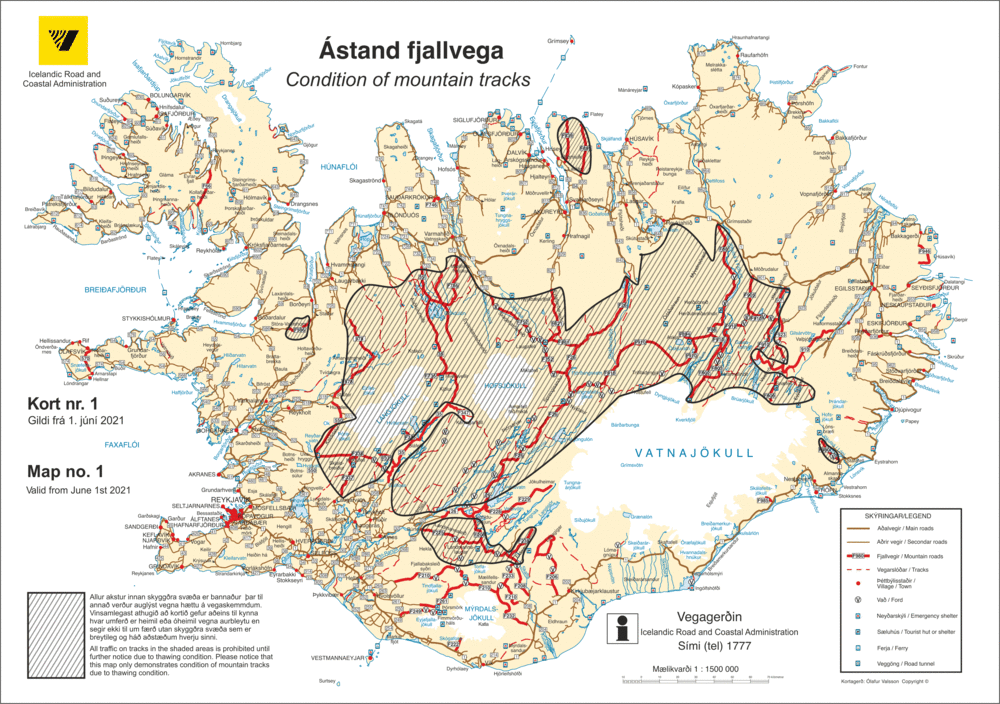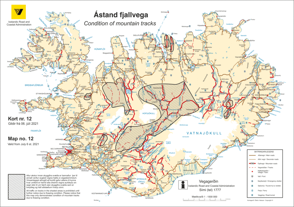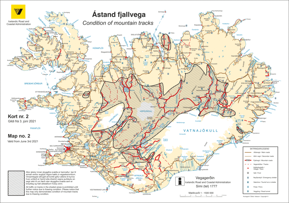 This is the Icelandic Halendi map archive for 2021, as originally posted by Vegagerdin. The first map has been published on 1 june. That is a very late start of the spring season this year, just like last year, when it wasn't an early one either! We can only guess the reason: snow! And who wants to know: there is something much more important, the volcanic eruption of "Fagradallsfjall"!