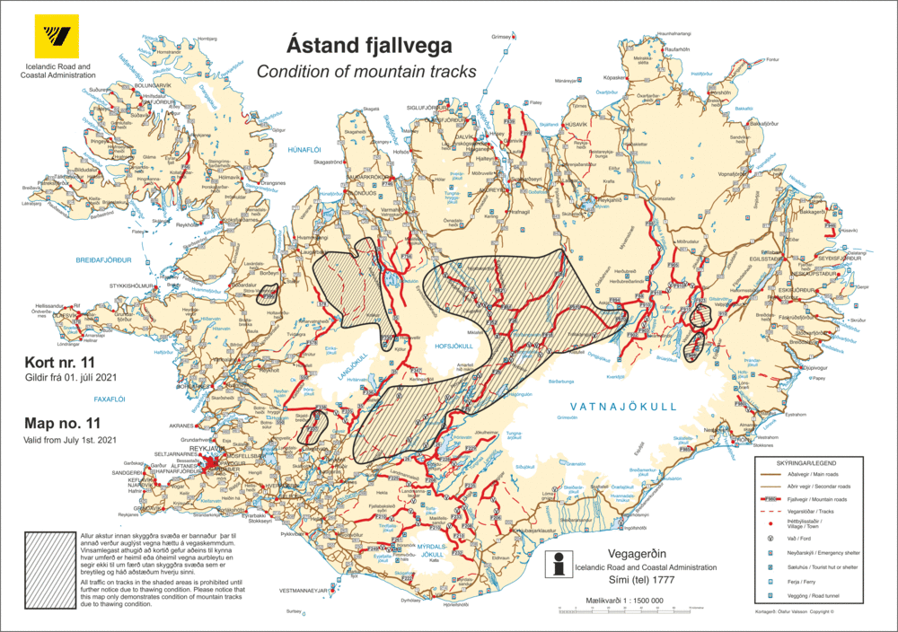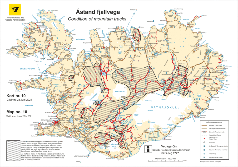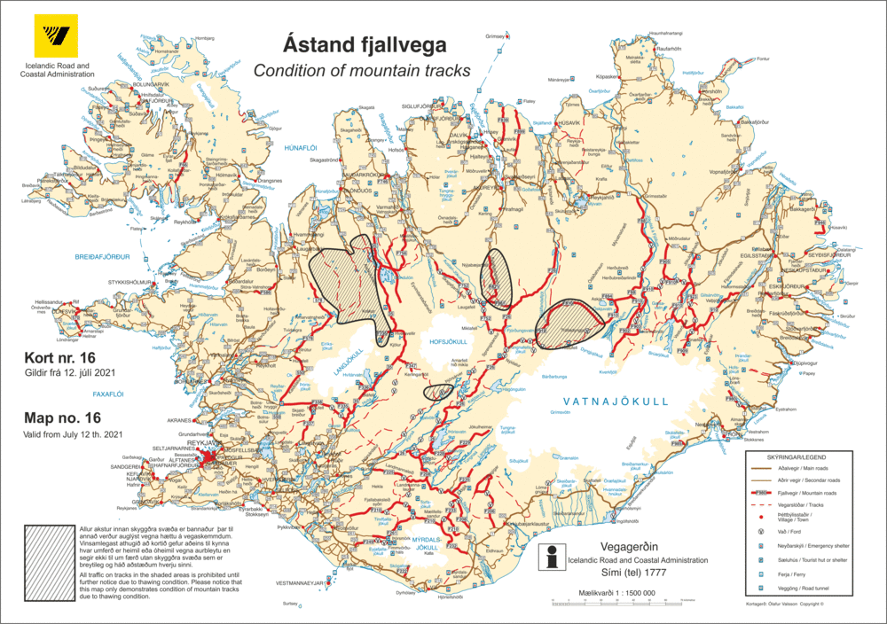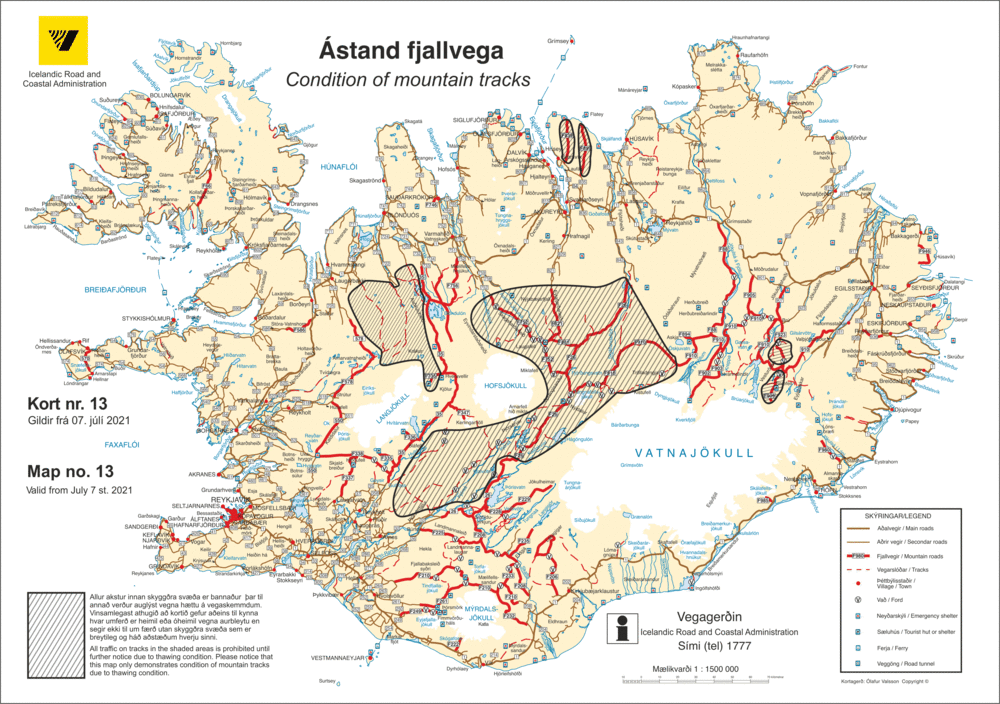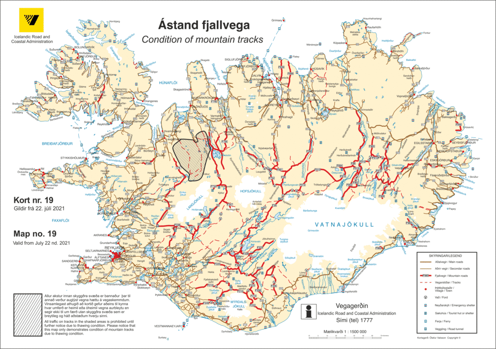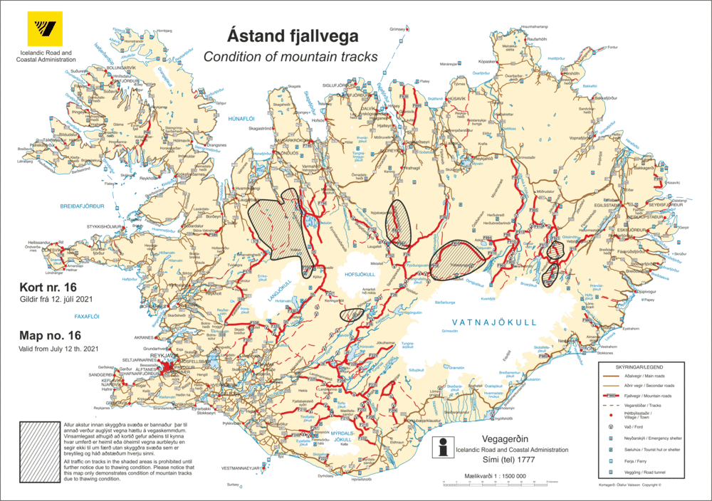 This is the Icelandic Halendi map archive for 2021, as originally posted by Vegagerdin. The first map has been published on 1 june. That is a very late start of the spring season this year, just like last year, when it wasn't an early one either! We can only guess the reason: snow! And who wants to know: there is something much more important, the volcanic eruption of "Fagradallsfjall"!